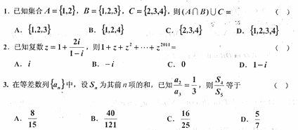 广西来宾市、百色市2011届高三毕业班总复习教学质量调研(数学理)扫描版