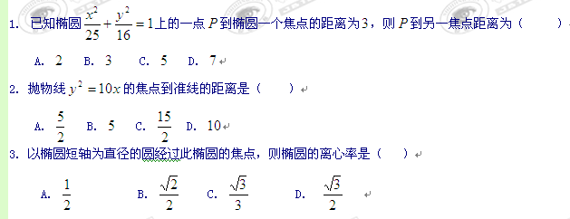 海南省洋浦中学10-11学年高二上学期期末考试(数学文)