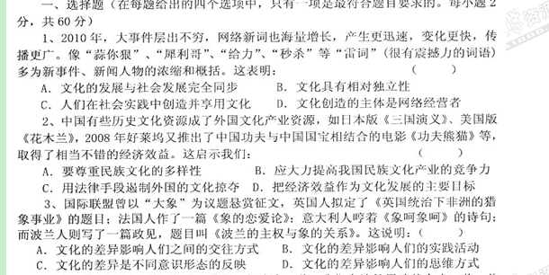 福建省福州市八县(市)协作校10-11学年高二第二学期半期联考试题(政治扫描版)