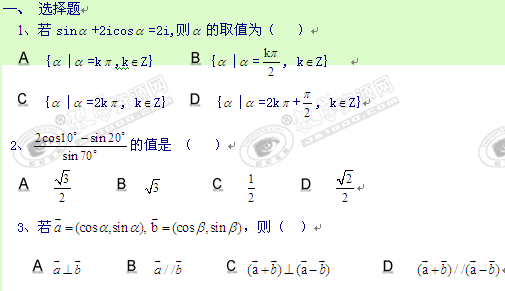 世纪金榜2011年高考数学原创预测题:专题二 三角函数、三角变换、解三角形、平面向量、复数(新课标理)