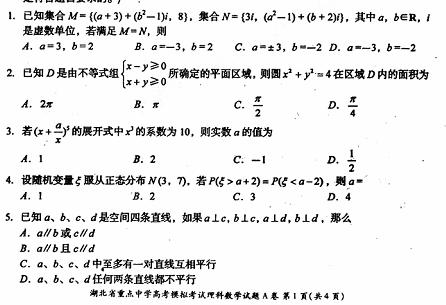 湖北省重点中学2011届高考模拟考试(数学理)扫描版