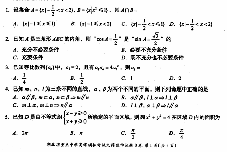 湖北省重点中学2011届高考模拟考试(数学文)扫描版
