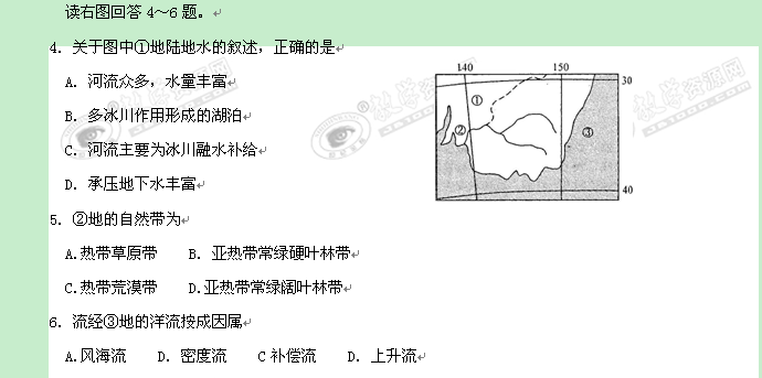 太原五中高一2022年月考文综试题