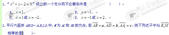 河南省驻马店市确山二高10-11学年高二上学期期中考试(数学理)