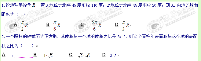 世纪金榜2011年高考数学原创预测题:专题五 立体几何(大纲版理)