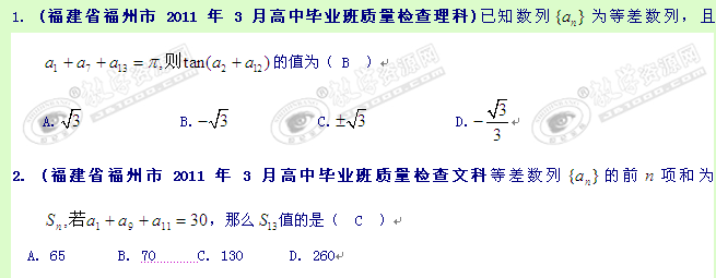 福建省各地市2011年高考最新联考数学试题分类汇编(4)数列