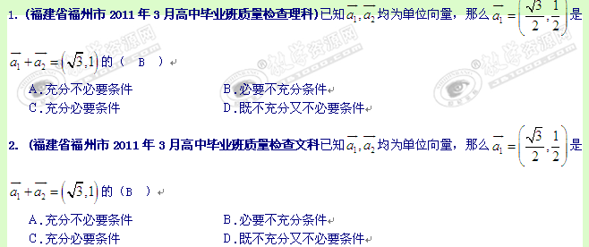 福建省各地市2011年高考最新联考数学试题分类汇编(7)平面向量