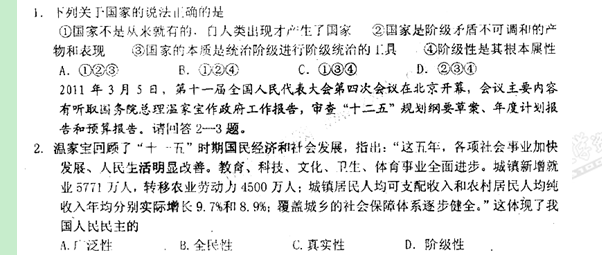 广东省揭阳一中10-11学年高一下学期期中考试(政治)扫描版