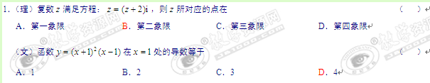 2011届甘肃、河北、新疆、贵州京海夏季大联考数学试卷(卷A)