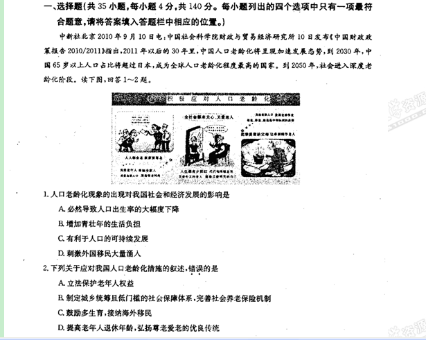 甘肃省等全国大联考2011届高三第七次联考(文综)扫描版