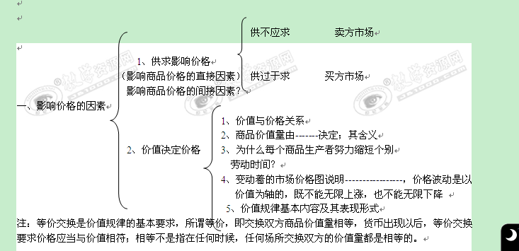 政治:2012届高三一轮复习《经济生活》第二课 多变的价格 知识体系