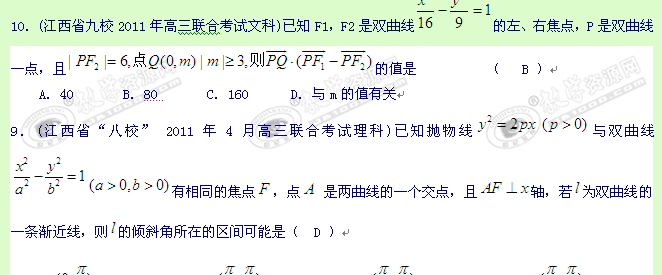 江西省各地市2011年高考数学最新联考试题分类大汇编第10部分圆锥曲线