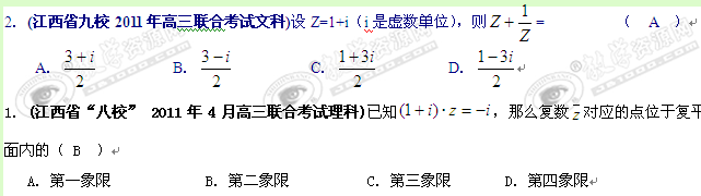 江西省各地市2011年高考数学最新联考试题分类大汇编第15部分复数、推理与证明(最后一题没答案)