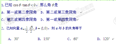 辽宁省沈阳铁路实验中学10-11学年高一6月月考(数学)无答案