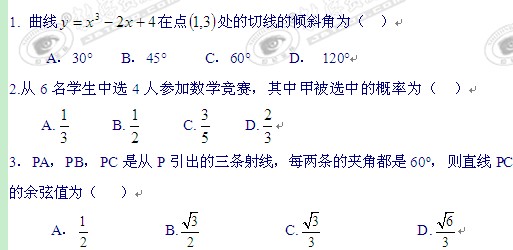 甘肃省武威六中10-11学年高二下学期期末考试(数学文)