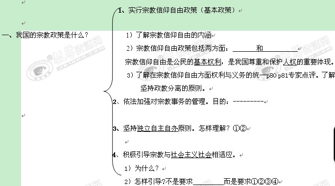 2012届高三一轮复习学案提纲:3.7.3《我国的宗教政策》(新人教必修2)