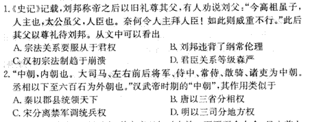 湖南省长郡中学2012届高三第二次月考试题(历史)