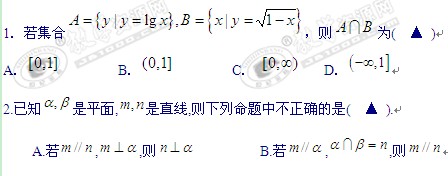 浙江省温州市十校联合体2012届高三上学期期中考试(数学文)