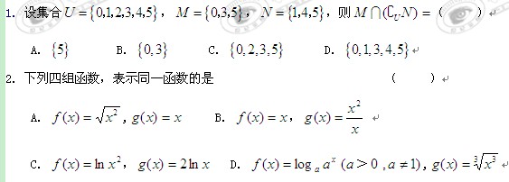 甘肃省张掖中学2011-2012学年高一上学期期中考试(数学:必修1)