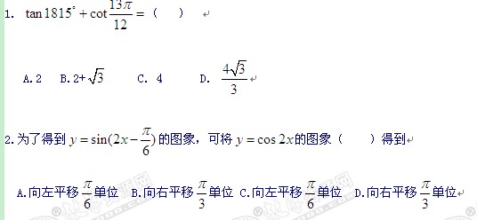 甘肃省天水一中2012届高三第二阶段考试题(数学理)
