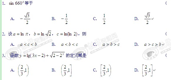 陕西宝鸡中学11-12学年高三上学期第三次月考(数学文A卷)缺答案