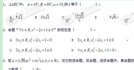 云南省楚雄州东兴中学11-12学年高二上学期期中考试(数学理)