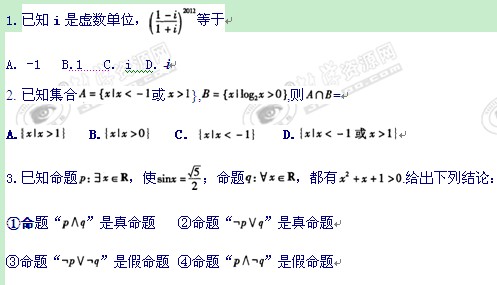 湖北省孝感市2012届高三上学期第一次统考(数学理)