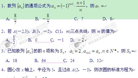 江西省上饶县中学2012届高三上学期第三次月考试题(数学普班)