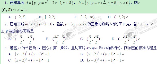 江西省上饶县中学2012届高三上学期第三次月考试题(数学特班)