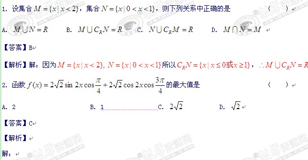 解析卷:浙江省杭师大附中2012届高三上学期第一次月考(数学文)