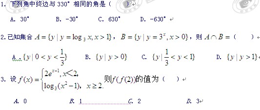 广东省梅州市曾宪梓中学11-12学年高一12月月考(数学)