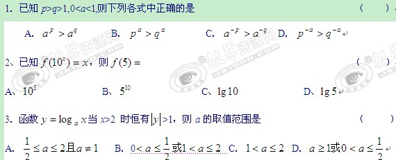 数学:第3章《基本初等函数1》测试(新人教B版必修1)