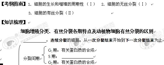 湖南省宁乡县实验中学高三生物第一轮复习学案:第12讲 细胞的增殖(一)(必修1)