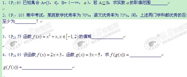江苏省南通市通州区石港中学2014届高一上学期期末复习小练习(回归课本共6套)(数学)答案不全