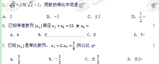 甘肃省白银市平川中恒学校11-12学年高二上学期期中考试(数学文)