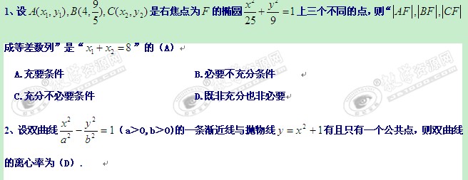 黑龙江省绥化市第九中学11-12学年高二上学期理科数学能力提高训练题(二)