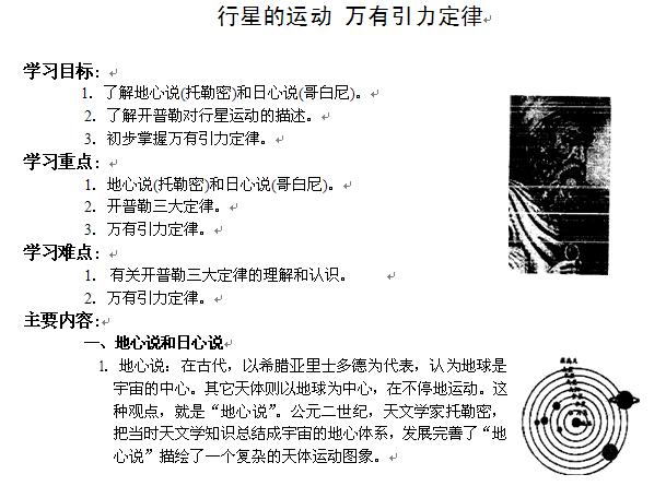 物理:6.1 行星的运动 万有引力定律(新人教版必修2)