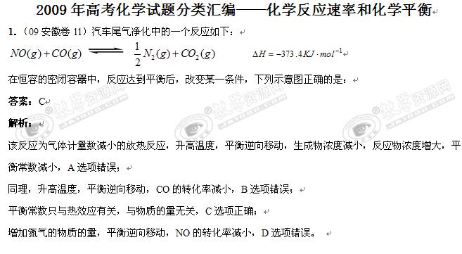 2009年全国高考化学试题分类汇编——化学反应速率和化学平衡