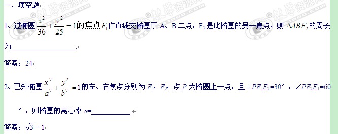高考考点详细划分强化训练专题4 椭圆
