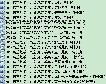 【打包下载】2012高三数学二轮总复习学案汇总(特长班)