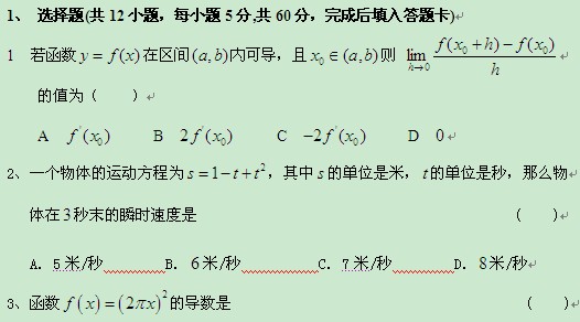 福建省北师大泉州附中11-12学年高二下学期第一次阶段考试(数学文)(无答案)