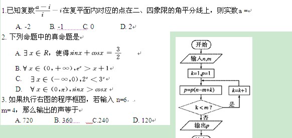 河南省镇平一高2012年春期高三第三次周考(数学理)