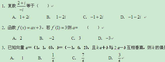 甘肃省张掖中学2011-2012学年高二第二学期第一次月考(数学理)缺答案
