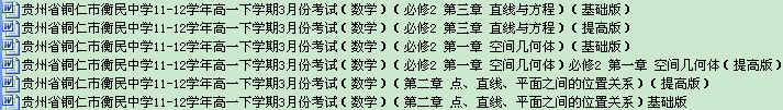 [打包下载]贵州省铜仁市衡民中学11-12学年高一下学期3月份考试(数学)必修2各章节考试汇总(共6套)