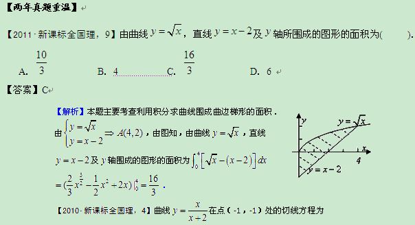 2012高考数学热点集锦:定积分的应用和导数的几何意义