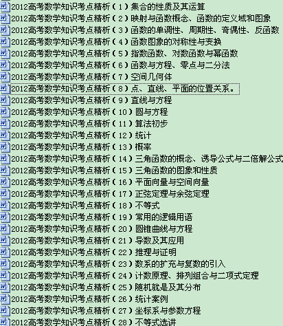[打包下载]2012高考数学知识考点精析(共28)