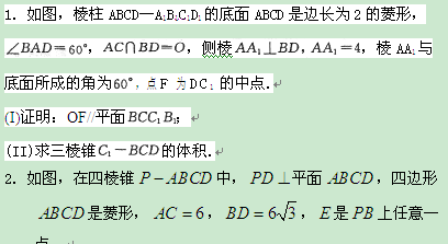 2012届高考数学(理)考前60天冲刺【六大解答题】空间向量与立体几何专练