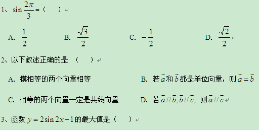 山西省大同市实验中学11-12学年高一下学期期中考试(数学理)(无答案)