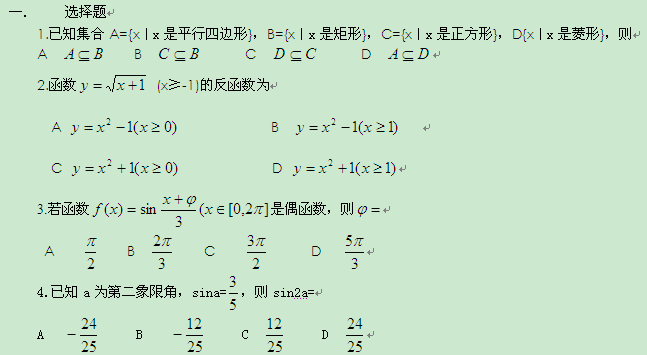 2012年普通高等学校招生全国统一考试全国卷(数学文)word版缺答案