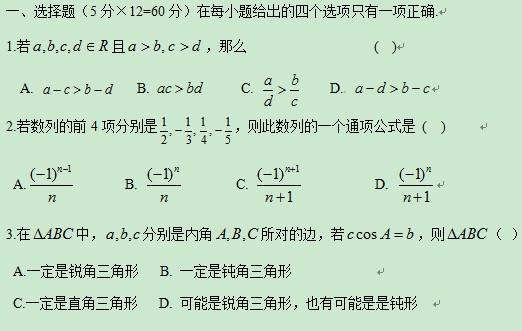 内蒙古巴彦淖尔市一中12-13学年高二9月月考(数学理)(无答案)